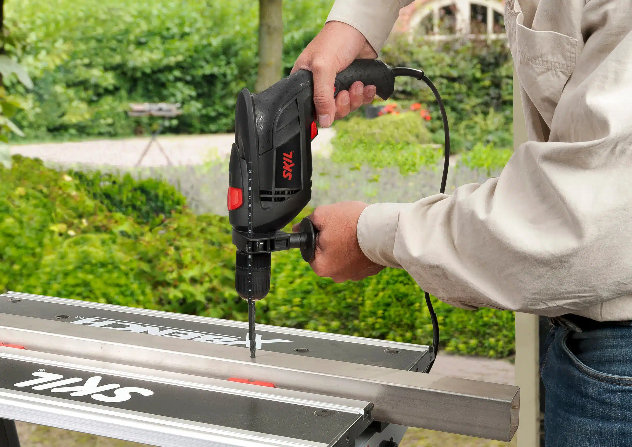 O berbequim de percussão SKIL 6290 é a ferramenta ideal para todos os seus trabalhos de perfuração dentro e fora de casa. Ele é muito potente graças ao seu motor de 710 W. Ele dispõe de um design compacto e de funções práticas, por exemplo, o indicador de função. Este berbequim de percussão tem uma bucha de aperto rápido semiautomática de 13 mm para uma mudança de acessórios rápida e simples. A velocidade variável com pré-seleção da velocidade proporciona-lhe versatilidade e controlo sobre o seu trabalho. Este berbequim de percussão é fornecido com um punho lateral, um batente de profundidade e um jogo de três brocas de 5, 6 e 8 mm para alvenaria.