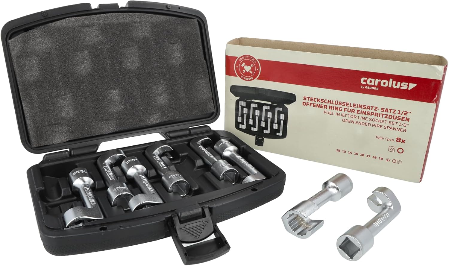 - Ponteiras/chaves de caixa para libertação e aperto rápidos dos injetores