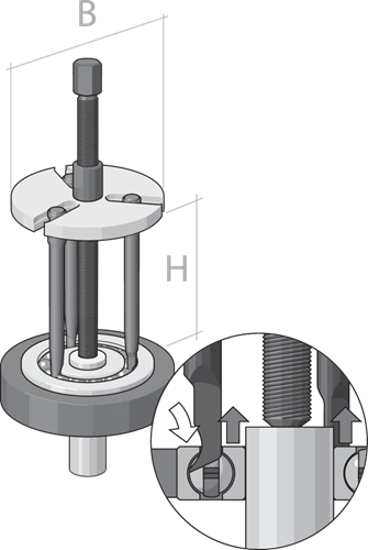 - Com o extrator de rolamentos GEDORE, a remoção de rolamentos montados em eixos dentro de um alojamento é possível de forma simples e sem dificuldades