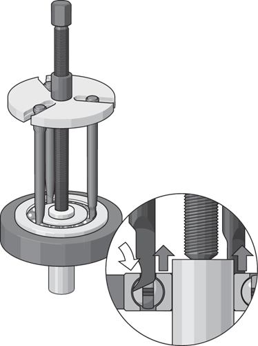 - Com o extrator de rolamentos GEDORE, a remoção de rolamentos montados em eixos dentro de um alojamento é possível de forma simples e sem dificuldades
