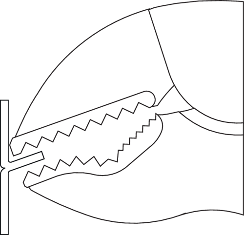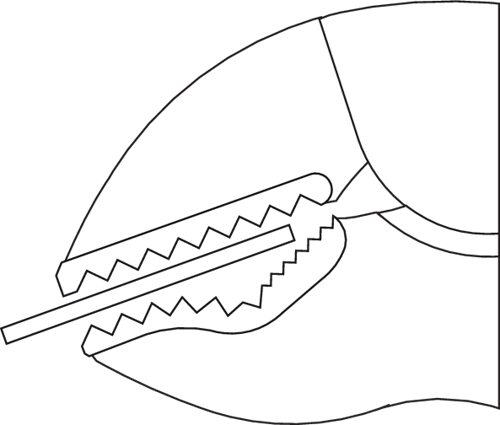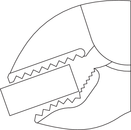 - Mordentes forjados e temperados com formato especial para agarrar, fixar e segurar com segurança