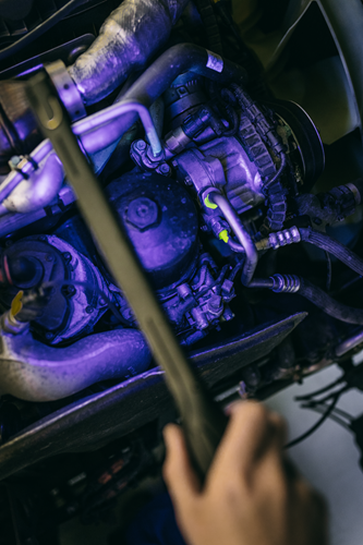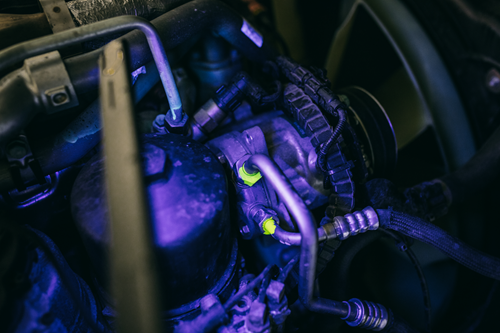 - Intensidade regulável continuamente e comutável entre luz LED e luz UV azul-violeta (para deteção de fugas em sistemas de ar condicionado e bombas de calor)