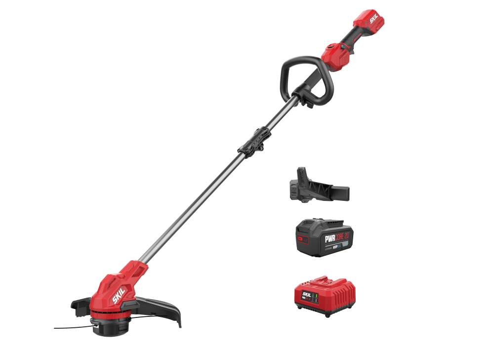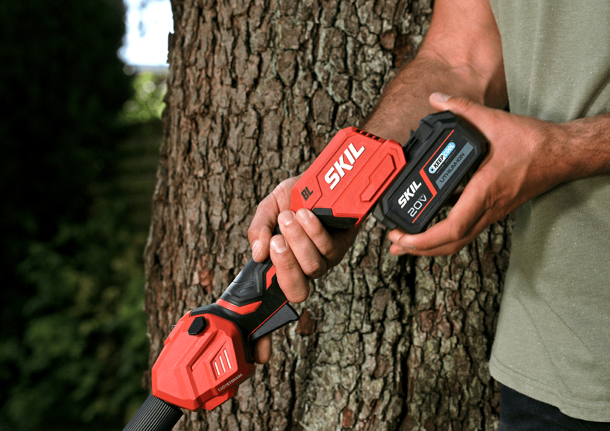 A SKIL 0250 AB é fornecida com uma bateria “20V Max” (18 V) de 4,0 Ah “Keep Cool™”, um carregador de 1 hora, um carretel de fio e um gancho Easy Storage.
