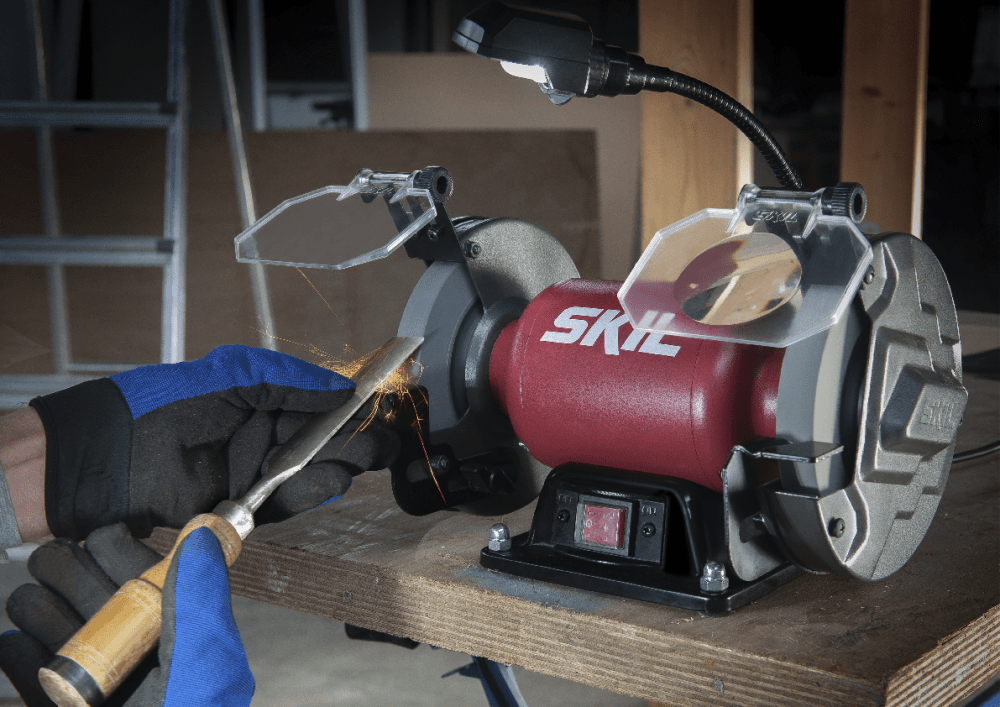 A esmeriladora SKIL 1355 foi concebida para realizar um trabalho de desbaste potente e preciso. O potente motor sem escovas de 400 W garante sempre um resultado de afiação ideal. Graças às grandes rodas abrasivas de 150 mm, esta máquina de retificar adequa-se a uma variedade de tarefas. A máquina tem uma caixa em metal inteiriço e resguardos, vindo equipada com pés de borracha para uma instalação estável. Além disso, a rebarbadora apresenta viseiras de proteção transparentes ajustáveis que protegem de faíscas, incluindo uma lupa integrada para trabalhos de precisão. Também é possível uma operação controlada graças ao arranque suave. Má iluminação na sua oficina? Não há problema! A luz LED flexível garante uma ótima visibilidade da sua peça de trabalho. Por fim, a máquina de retificar está equipada com apoios para a ferramenta estáveis e ajustáveis e um interruptor de ligar e desligar à prova de pó. A SKIL 1355 AA é fornecida com 2 rodas abrasivas de 150 mm (grão 36 e 60), viseiras de proteção e apoios para a ferramenta ajustáveis.