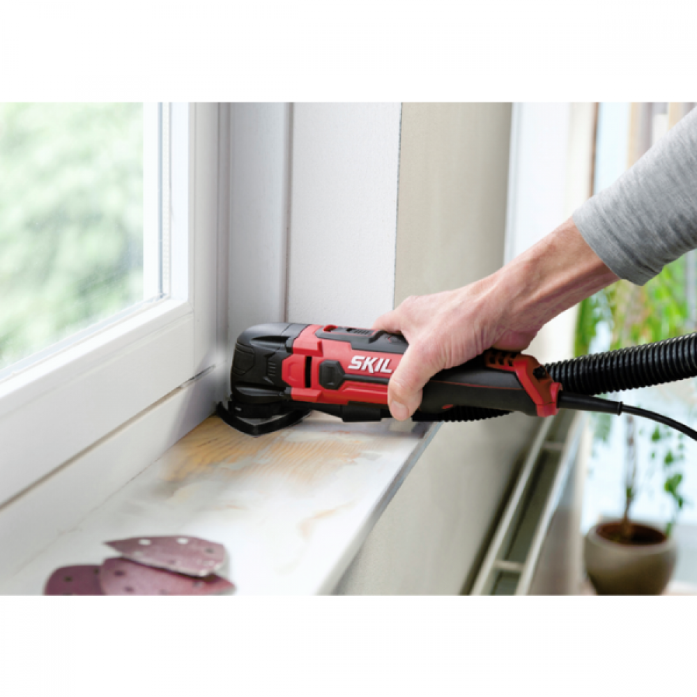 A SKIL 1491 é uma multiferramenta potente de 300 W com velocidade variável para os melhores resultados em vários materiais. Boa visibilidade do seu trabalho graças à iluminação LED. O batente de profundidade incluído, que é ajustável até 60 mm, evita o desgaste rápido dos acessórios e o dano acidental dos materiais por baixo da peça a ser trabalhada. Ao trocar os acessórios fornecidos, pode utilizar esta multiferramenta para uma grande variedade de trabalhos de bricolage tais como lixar, serrar e cortar. A multiferramenta é compatível com os acessórios básicos «Starlock» e acessórios «OIS» amplamente disponíveis, de forma que encontrará sempre o acessório adequado para o seu trabalho. Para trabalhar de forma mais limpa durante o trabalho de lixamento, pode conectar esta ferramenta ao adaptador para aspirador fornecido que é compatível com a maioria dos aspiradores de tamanho padrão. Além disso, o design ergonómico com Softgrip assegura um conforto de trabalho extra. A SKIL 1491 DB é fornecida com 9 folhas de lixa, uma placa base de lixamento, um batente de profundidade, lâmina de serra segmentada, lâmina de corte por imersão e adaptador para aspirador.