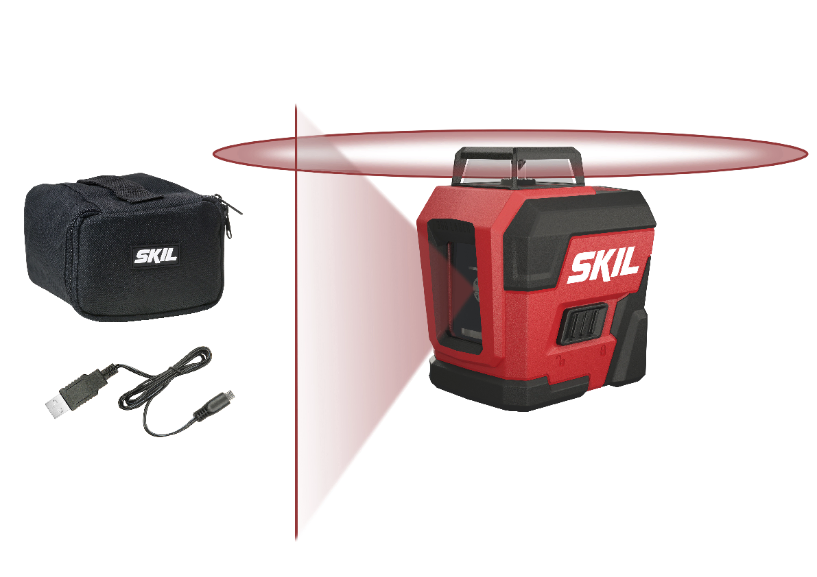 O SKIL 1960 é um nível laser 360 graus versátil que é ideal para efetuar uma projeção laser em toda a sala. Este projeta linhas laser precisas horizontais, verticais ou mesmo cruzadas. Este nível laser dispõe de uma bateria de iões de lítio integrada que pode ser facilmente carregada através da porta de carregamento micro USB integrada. As linhas laser são niveladas automaticamente no modo de autonivelamento. E quando estiver a trabalhar numa tarefa de bricolage que não necessite de uma projeção nivelada, pode comutar facilmente para o modo de nivelamento manual. Isto permite-lhe projetar linhas diagonais, por exemplo, ao instalar corrimãos. Graças ao raio de ação de até 20 metros, ao design compacto com Softgrip e à interface de utilizador simples, o SKIL 1960 constitui uma excelente solução para os seus trabalhos de nivelamento de 360°. Por último, o prático indicador do nível de carga da bateria mostra claramente a capacidade restante da bateria. O SKIL 1960 DA é fornecido num saco de transporte com um cabo de carregamento USB.