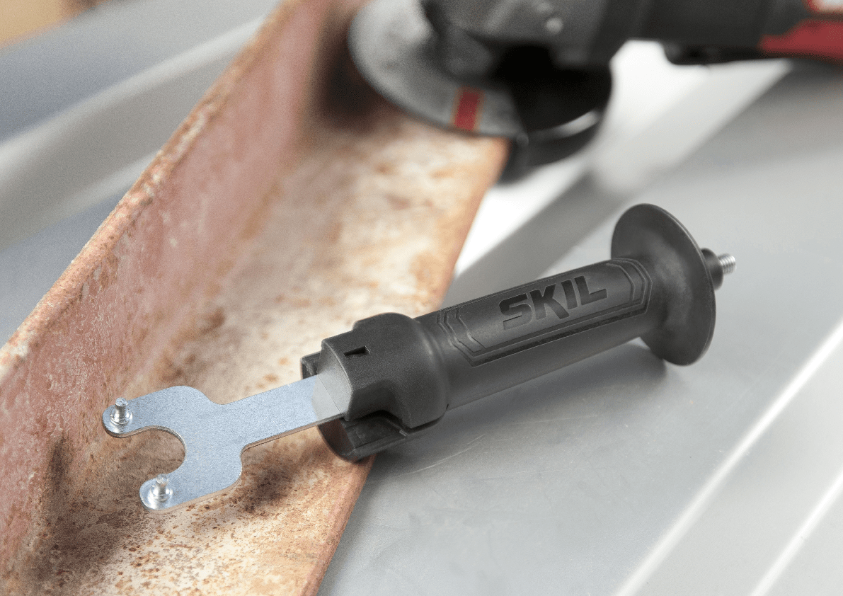 A SKIL 9130 é uma rebarbadora eficiente compatível com discos de 115 mm. Graças ao motor de 720 W, esta ferramenta assegura excelentes resultados de corte, desbaste e desenferrujamento. Esta rebarbadora dispõe de um prático interruptor de patilha que oferece um controlo ideal. Este requer apenas uma ligeira pressão para acionamento e a ferramenta desliga-se imediatamente ao libertar o interruptor. Um sistema «Clic» permite-lhe ajustar facilmente o resguardo sem necessidade de chave, para que possa desviar as faíscas na direção desejada. Graças ao depósito para chave integrado no punho lateral, a chave está sempre acessível para mudar os acessórios. E, dependendo da tarefa que tem em mãos, pode ajustar facilmente o punho lateral em três posições confortáveis. Esta ferramenta dispõe de rolamentos de esferas com isolamento contra o pó e de engrenagens helicoidais que asseguram um maior binário, uma vida útil mais longa e um nível de ruído mais baixo durante o trabalho. A caixa de engrenagem em metal compacta e durável permite-lhe lidar com esta rebarbadora com facilidade, mesmo quando trabalha em espaços limitados. É fácil mudar ou substituir os discos, graças ao prático sistema de bloqueio do fuso.